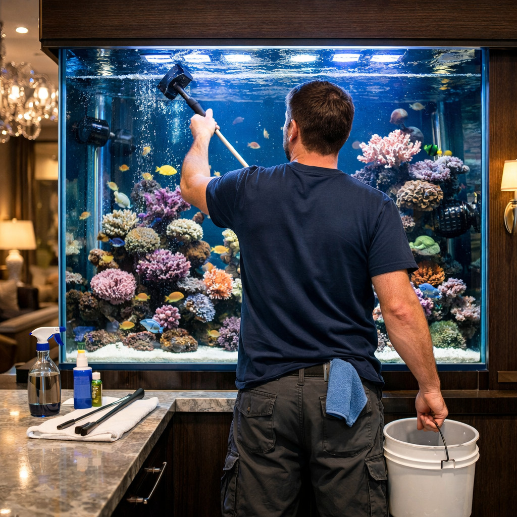 Que ce soit un entretien ponctuel ou un suivi mensuel, nous intervenons pour maintenir votre aquarium toujours le plus propre possible et, surtout en bonne santé. La régularité et la rigueur sont primordiales en Aquariophilie. Les changements d'eau réguliers et le suivi des paramètres sont nécessaires au bon fonctionnement de votre aquarium.